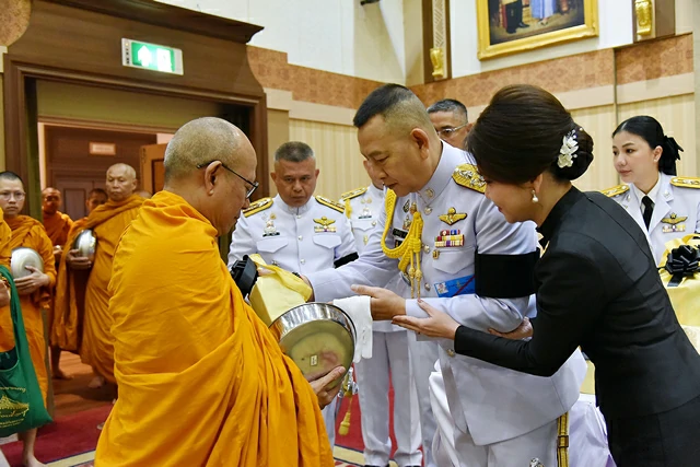 ทั้งนี้ คณะสงฆ์ 10 รูป ประกอบพิธีบำเพ็ญกุศลปัญญาสมวาร จากนั้น ผบ.ตร. และนายกสมาคมแม่บ้านตำรวจ นำคณะตักบาตรพระสงฆ์ เพื่อถวายเป็นพระราชกุศลฯ