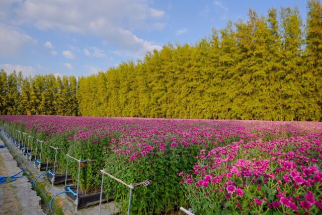สำหรับสวนดอกไม้มีทั้งหมด 6 แปลง ได้แก่ 1.แปลง A ประทุมเจดีย์ ถัดจากป้าย P13 เป็นทุ่งดอกแพงรวย สีแดง (แพงพวย) จำนวนประมาณ 111,000 ต้น 2.แปลง B บริเวณป้าย P13 ดอกเบญจทรัพย์ (เบญจมาศ) สีม่วง และหลากสี จำนวนประมาณ 46,700 ต้น 3.แปลง C หลังวิหารคด ค16-ค20 ดอกทรัพย์บานชื่น (บานชื่น) สีชมพู จำนวนประมาณ 154,000 น. 4.แปลง D หลังวิหารคด ค14-ค16 เป็นดอกแพงรวย สีแดง จำนวน ประมาณ 45,600 ต้น 5.แปลง P11 บริเวณป้าย P11 ดอกเบญจทรัพย์ สีม่วง จำนวนประมาณ 46,100 ต้น 6.แปลง E ถัดจากป้าย P11 เป็นทุ่งเบญทรัพย์ สีม่วง จำนวนประมาณ 132,000 ต้น ซึ่งที่แปลง E จะมีการเก็บดอกเรื่อย ๆ และมีดอกน้อยลงหลังวันที่ 15 ธันวาคม นี้ รวมทั้ง 6 แปลงมีดอกไม้ทั้งหมด จำนวน 535,400 ต้น
