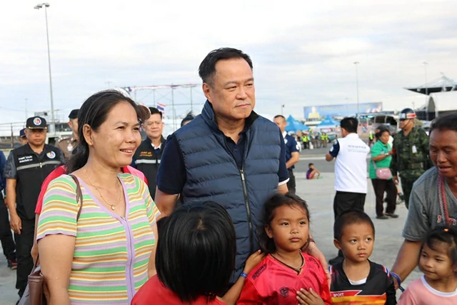 วันที่ 14 ธ.ค.68 นายอนุทิน ชาญวีรกูล นายกรัฐมนตรีและรัฐมนตรีว่าการกระทรวงมหาดไทย พร้อม พลโทอดุลย์ บุญธรรมเจริญ รัฐมนตรีช่วยว่าการกระทรวงกลาโหม ลงพื้นที่เยี่ยมศูนย์พักพิง จ.บุรีรัมย์ได้เดินทางมาเยี่ยมประชาชนที่ศูนย์พักพิงชั่วคราว สนามช้างอินเตอร์เนชั่นแนลเซอร์กิต ต.อิสาณ อ.เมือง จ.บุรีรัมย์ เพื่อเป็นขวัญและกำลังใจให้กับผู้อพยพ