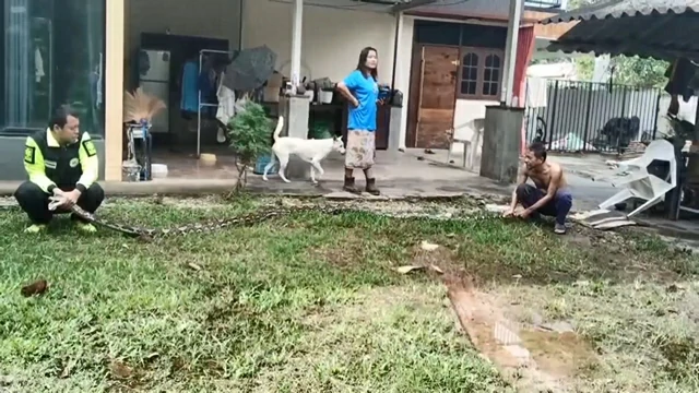 หลังเจ้าหน้าที่ได้รับแจ้งจึงรีบนำอุปกรณ์ในการจับงู เข้าตรวจสอบและจับทันที