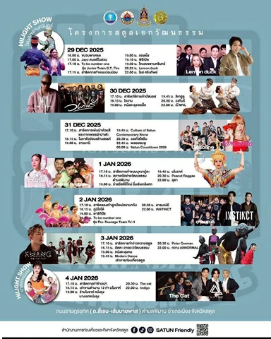 ทั้งนี้ ผู้ว่าราชการจังหวัดสตูลได้เชิญชวนนักท่องเที่ยวจากทั่วประเทศและต่างประเทศ มาร่วมสัมผัสเสน่ห์ของ “สตูลเอกวัฒนธรรม” ร่วมกิจกรรม Satun Friendly Countdown 2026 และร่วมเฉลิมฉลองการก้าวสู่ปีใหม่ พร้อมนับถอยหลังไปด้วยกัน ท่ามกลางบรรยากาศธรรมชาติ วัฒนธรรม และความเป็นมิตรของชาวจังหวัดสตูล ซึ่งพร้อมต้อนรับนักท่องเที่ยวจากทั่วโลกอย่างอบอุ่น