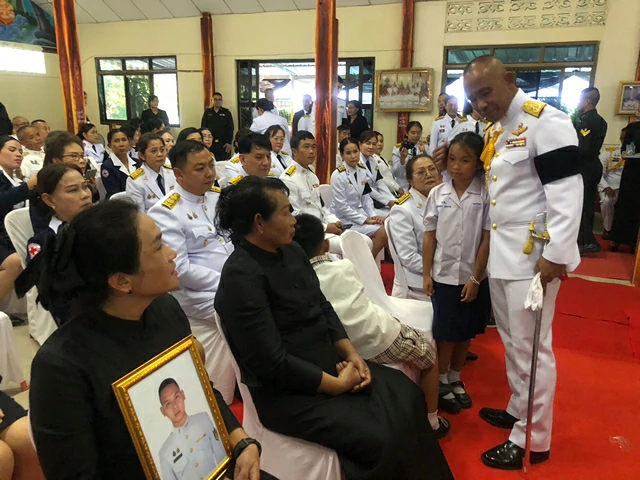 โดยเฉพาะนางรวีวรรณ บุนนาค อายุ 44 ภรรยาหมู่ตี๋ ลูกสาววัย 8 ขวบ และลูกชายวัย 6 ขวบ และแม่ของส.อ.อภิสิทธิ์ ซึ่งร้องไห้ที่ต้องสูญเสียบุคคลอันเป็นที่รักอย่างกระทันหัน แต่ทุกคนก็มีความภาคภูมิใจที่หมู่ตี๋เสียสละชีวิตเพื่อชาติโดยมีผู้บังคับบัญชา ญาติ ส่วนราชการ ผู้นำท้องถิ่น ผู้นำชุมชน และประชาชนร่วมพิธี