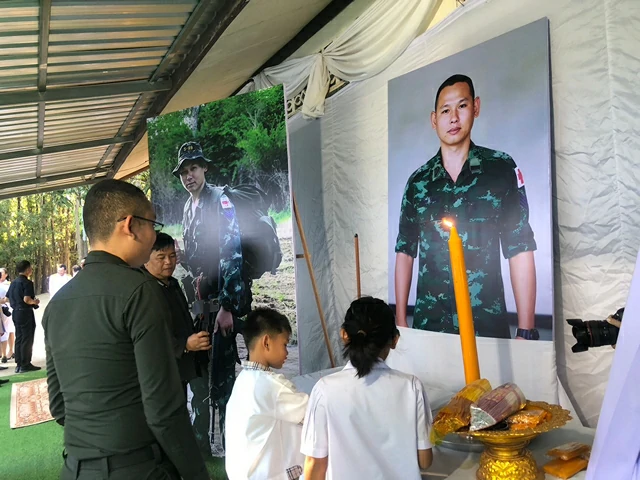 โดยเฉพาะนางรวีวรรณ บุนนาค อายุ 44 ภรรยาหมู่ตี๋ ลูกสาววัย 8 ขวบ และลูกชายวัย 6 ขวบ และแม่ของส.อ.อภิสิทธิ์ ซึ่งร้องไห้ที่ต้องสูญเสียบุคคลอันเป็นที่รักอย่างกระทันหัน แต่ทุกคนก็มีความภาคภูมิใจที่หมู่ตี๋เสียสละชีวิตเพื่อชาติโดยมีผู้บังคับบัญชา ญาติ ส่วนราชการ ผู้นำท้องถิ่น ผู้นำชุมชน และประชาชนร่วมพิธี