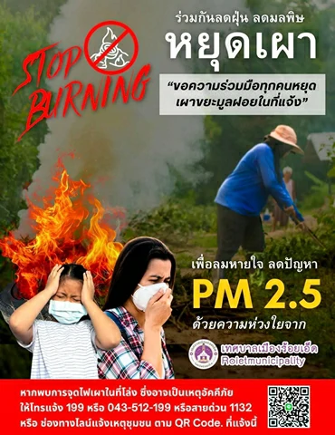กรณีพบการเผาในพื้นที่ให้ดำเนินการยับยั้งการเผาในทันทีและบังคับใช้มาตรการทางกฎหมายในการห้ามเผาอย่างเด็ดขาด พร้อมกันนี้ ให้ยกระดับมาตรการลดผลกระทบต่อประชาชน โดยให้หน่วยงานด้านสาธารณสุข องค์กรปกครองส่วนท้องถิ่น และหน่วยงานที่เกี่ยวข้องในพื้นที่ ออกหน่วยให้บริการประชาชน จัดหาอุปกรณ์ป้องกันฝุ่นละอองขนาดเล็ก (PM 2.5) จัดเตรียมพื้นที่ปลอดภัย (Safety Zone) รวมถึงให้ประชาสัมพันธ์สร้างการรับรู้เกี่ยวกับข้อปฏิบัติที่ถูกต้องในการป้องกันตนเองจากฝุ่นละอองขนาดเล็ก (PM 2.5) ให้ประชาชน โดยเฉพาะอย่างยิ่งประชาชนกลุ่มเสี่ยง ทั้งผู้สูงอายุ ผู้ป่วยระบบทางเดินหายใจ เด็กและเยาวชนในสถานศึกษาหรือศูนย์เด็กเล็ก ผู้ที่ทำงานกลางแจ้ง ให้ดำเนินการตามข้อปฏิบัติดังกล่าวเพื่อลดผลกระทบจากฝุ่นละอองขนาดเล็ก (PM 2.5)