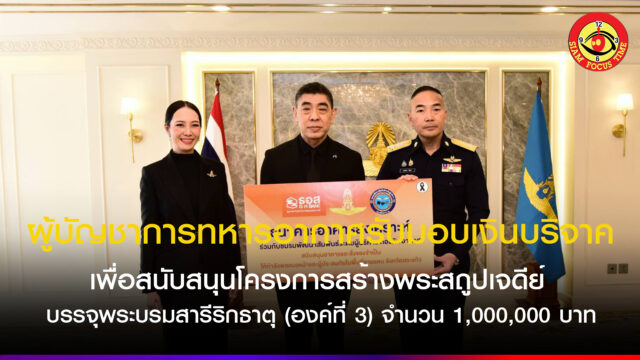 ผู้บัญชาการทหารอากาศรับมอบเงินบริจาคเพื่อสนับสนุนโครงการสร้างพระสถูปเจดีย์ บรรจุพระบรมสารีริกธาตุ (องค์ที่ 3) จำนวน 1,000,000 บาท