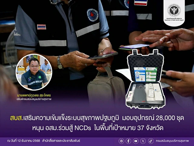 นายแพทย์ภูวเดช สุระโคตร อธิบดีกรม สบส. ให้สัมภาษณ์ว่า สถานการณ์โรคไม่ติดต่อเรื้อรัง หรือ NCDs ของประเทศไทยยังคงเป็นปัญหาสาธารณสุขที่สำคัญ เนื่องจากเป็นสาเหตุหลักของการเสียชีวิตของคนไทย โดยเฉพาะโรคอ้วน โรคความดันโลหิตสูง และโรคเบาวาน ซึ่งทำให้เกิดการเสียชีวิตก่อนวัยอันควร ในปีงบประมาณ พ.ศ. 2569 กรม สบส.จึงมีนโยบายสร้างความเข้มแข็งระบบสุขภาพปฐมภูมิ โดยการขับเคลื่อนและยกระดับให้ ศูนย์สาธารณสุขมูลฐานชุมชน (ศสมช.) เป็นศูนย์ปฏิบัติการโรคไม่ติดต่อเรื้อรังประจำหมู่บ้าน (ศูนย์ NCDs ประจำหมู่บ้าน) ที่มีบทบาทในการคัดกรอง NCDs เบื้องต้น และให้บริการสุขภาพขั้นพื้นฐานแก่ประชาชน โดยส่งเสริมให้ อสม.มีการจัดกิจกรรมเสริมสร้างสุขภาพเพื่อปรับเปลี่ยนพฤติกรรมสุขภาพ ลดป่วย ลดโรค ลดรายจ่าย ลดเวลา และความแออัดจากการไปรับบริการที่สถานบริการสาธารณสุข โดย กรม สบส. ได้ดำเนินการสนับสนุนระบบการจัดเก็บและประมวลผลข้อมูลพร้อมเครื่องมือ ให้กับสำนักงานสาธารณสุขอำเภอ ที่เป็นศูนย์ป้องกันโรคไม่ติดต่อในชุมชน (NCDs Prevention Center) จำนวน 300 แห่ง ในพื้นที่เป้าหมาย 37 จังหวัด และในเดือนธันวาคม 2568 กรม สบส. จะดำเนินการสนับสนุนอุปกรณ์ปฏิบัติงานหรือกระเป๋า อสม. ซึ่งประกอบด้วย คอมพิวเตอร์แบบพกพา/เครื่องวัดความดัน/เครื่องวัดออกซิเจน/เครื่องวัดอุณหภูมิ/เครื่องชั่งน้ำหนัก/สายวัดรอบเอว ฯลฯ จำนวน 28,000 ชุด ให้พี่น้อง อสม. ได้นำไปใช้ปฏิบัติงานคัดกรองสุขภาพของประชาชนในชุมชน พร้อมส่งต่อข้อมูลที่ได้ให้กับศูนย์ป้องกันโรคไม่ติดต่อในชุมชน (NCDs Prevention Center) ได้นำข้อมูลมาทำการวิเคราะห์ และวางแผนป้องกันโรคให้คนไทยห่างไกลจากโรค NCDs ประชาชนมีคุณภาพชีวิตที่ดี ชุมชนเกิดความเข้มแข็ง นำไปสู่ชุมชนขับเคลื่อนสาธารณสุขมูลฐานอย่างยั่งยืน