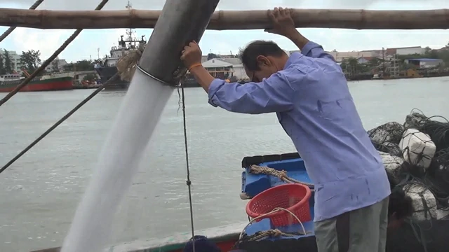 เพื่อเตรียมออกเรือทำการประมงในอ่าวไทยในวันนี้ คลื่นลมลดความรุนแรงลงเหลือ 1-2 เมตร และสามารถนำเรือออกไปทำการประมงได้ เนื่องจากต้องจอดเพราะคลื่นลมแรงมาหลายวันและมีค่าใช้จ่ายเพิ่มขึ้นทุกวันในการดูแลลูกเรือประมงที่เป็นแรงงานต่างด้าวหลายสิบชีวิตที่ลงมาทำงานในเรือ