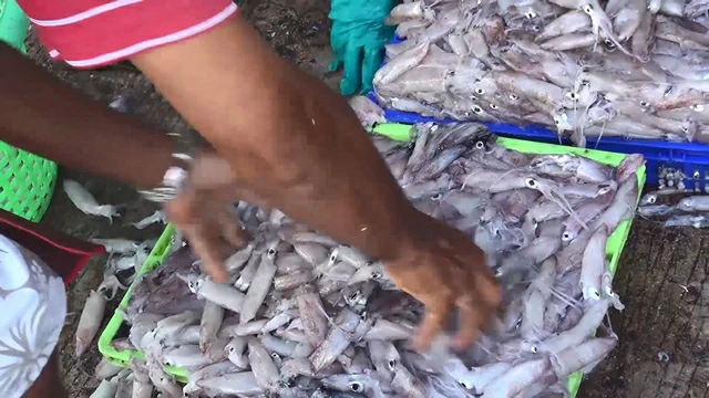 ในขณะเดียวกันเรือประมงไดร์หมึกที่เดินทางกลับเข้าฝั่งนำสินค้าสัตว์น้ำขึ้นท่าส่งขายให้กับแพปลาและแม่ค้าเพื่อนำไปขายในตลาดทรัพย์สินพลาซ่า และเตรียมเรือเพื่อออกเรือในช่วงเย็นวันนี้เช่นเดียวกัน