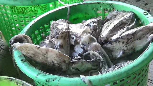 ในขณะเดียวกันเรือประมงไดร์หมึกที่เดินทางกลับเข้าฝั่งนำสินค้าสัตว์น้ำขึ้นท่าส่งขายให้กับแพปลาและแม่ค้าเพื่อนำไปขายในตลาดทรัพย์สินพลาซ่า และเตรียมเรือเพื่อออกเรือในช่วงเย็นวันนี้เช่นเดียวกัน