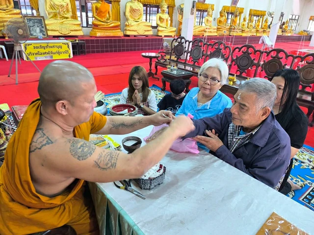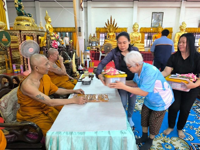 นักท่องเที่ยวสายมูให้ความศรัทธาเดินทางมาวัดหลวงพ่อปากแดงเข้าพิธีนอนโลงศพสะเดาะเคราะห์ต่อดวงชะตาชีวิต ฝึกตายก่อนตายจริงฝึกสติให้คิดได้ว่าทุกคนหนีไม่พ้นความตาย พร้อมเจิมหน้าผาก เจิมฝ่ามือ ลงยันต์กระเป๋าสตางค์ ลงยันต์โทรศัพท์