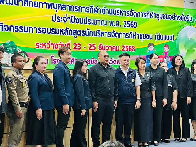 การอบรมหลักสูตรนักบริหารจัดการกีฬาชุมชน (ต้นแบบ) กำหนดจัดขึ้นเป็นระยะเวลา 3 วัน ระหว่างวันที่ 23–25 ธันวาคม 2569 โดยมีผู้เข้าร่วมอบรมประกอบด้วย 1) ผู้แทนจากองค์กรปกครองส่วนท้องถิ่น 2) ผู้แทนเจ้าหน้าที่พลศึกษา และ 3) อาสาสมัครกีฬาและผู้นำการออกกำลังกาย (อสก.) จาก 14 จังหวัดทั่วประเทศ