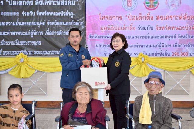 วันนี้ (วันพุธที่ 24 ธันวาคม พ.ศ. 2568) มูลนิธิป่อเต็กตึ๊ง นำโดย นางสาวดวงชุตา ติยะพจนพรกุล ผู้ช่วยผู้จัดการฝ่ายสังคมสงเคราะห์ และนางสาวศุภรัตน์ สมบัติเจริญไทย หัวหน้าแผนกส่งเสริมการศึกษาและอาชีพ นำทีมลงพื้นที่มอบรถเข็นวีลแชร์ในโครงการ “ป่อเต็กตึ๊ง สงเคราะห์สังคม” แก่ผู้พิการด้อยโอกาสในพื้นที่จังหวัดหนองบัวลำภู เพื่อบรรเทาความยากลำบากในการดำรงชีวิตและเพื่อให้มีความสามารถในการช่วยเหลือตนเองได้ รวมจำนวน 100 คัน พร้อมมอบค่าพาหนะแก่ผู้พิการคนละ 500 บาท รวมงบประมาณเป็นเงินทั้งสิ้น 290,000 บาท (สองแสนเก้าหมื่นบาทถ้วน) โดยมี นายเสฏฐชัย ยุทธเศรษฐสิริ รองผู้ว่าราชการจังหวัดหนองบัวลำภู เป็นประธานในพิธี นางสาวกนกวรรณ เหลืองมงคลเลิศ พัฒนาสังคมและความมั่นคงของมนุษย์จังหวัดหนองบัวลำภู ร่วมพิธี พร้อมด้วยมูลนิธิรวมน้ำใจหนองบัวลำภู เป็นผู้ประสานงานและร่วมในพิธี ณ ที่ว่าการอำเภอเมืองหนองบัวลำภู อำเภอเมือง จังหวัดหนองบัวลำภู