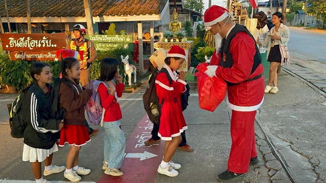 ตาก-สภ.แม่ระมาดแค่งตัวเป็น “ซานตาครอส”รณรงค์ขับขี่ปลอดภัยไร้อุบัติเหตุ “สร้างถนนปลอดภัย เพื่อคนที่เรารัก”