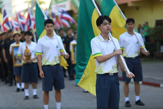 ที่สนามกีฬาโรงเรียนกาฬสินธุ์พิทยาสรรพ์ ดร.วิภา สายรัตน์ ผู้อำนวยการสำนักงานเขตพื้นที่การศึกษามัธยมศึกษากาฬสินธุ์ เป็นประธานพิธีเปิดการแข่งขันกีฬาภายใน “ขี้เหล็กเกมส์” ประจำปีการศึกษา 2568 โดยมีดร.จารุวรรณ รัตนมาลี ผู้อำนวยการโรงเรียนกาฬสินธุ์ คณะผู้บริหาร ครู บุคลากรทางการศึกษา นักเรียน และผู้ปกครองร่วมกิจกรรมอย่างพร้อมเพรียง