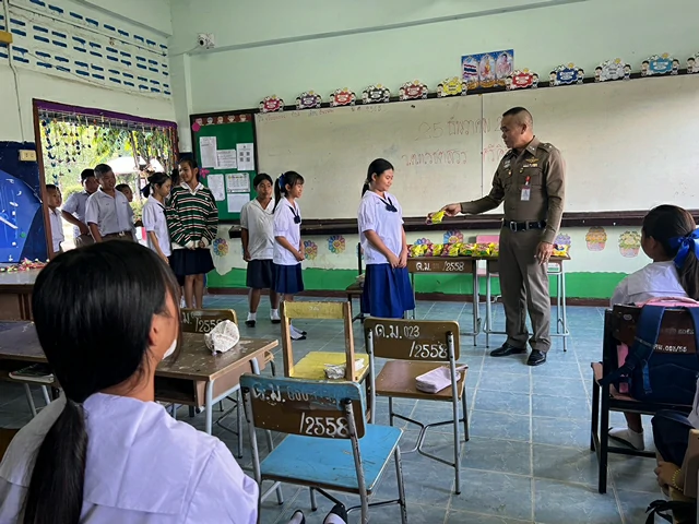 วันที่ 26 ธันวาคม 2568 ผู้สื่อข่าวรายงานว่า ภายใต้การอำนวยการโดย พ.ต.อ.สมชาย ภูกองชนะ ผกก.สภ.เขาวง จ.กาฬสินธุ์ มอบหมายให้ ร.ต.ท.รชตสรร ศรีคิรินทร์ ครูตำรวจแดร์ เข้าทำการสอนตามโครงการการศึกษาเพื่อต่อต้านการใช้ยาเสพติดในเด็กนักเรียน (D.A.R.E.ประเทศไทย) ประจำภาคเรียนที่ 2/2568