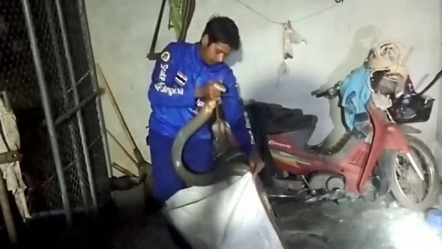 หลังรับแจ้ง นายทวีศักดิ์ ฯจึงรีบนำอุปกรณ์ในการจับงูเข้าทำการตรวจสอบภายในบ้านทันที เมื่อไปถึงบ้านเลขที่ดังกล่าว ก็รีบเข้าตรวจสอบภายในบ้านก็พบว่าเป็นงูจงอางตัวใหญ่ ยาวเกือบ 4 เมตร จึงรีบนำอุปกรณ์ในการจับงูเข้าทำการจับงูจงอางทันที