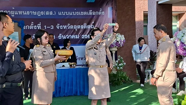 เมื่อวันที่ 27 ธันวาคม ที่สำนักงานคณะกรรมการการเลือกตั้ง (กกต.) ประจำจังหวัดอุตรดิตถ์ ต.งิ้วงาม อ.เมืองอุตรดิตถ์ สถานที่รับสมัครสมาชิกสภาผู้แทนราษฎร (ส.ส.) อุตรดิตถ์ทั้ง 3 เขตเลือกตั้ง มีประชาชนจำนวนมากเดินทางมาให้กำลังใจบรรดาผู้สมัคร แต่ไม่คึกคักเหมือนการเลือกตั้งปี 2566 ที่ผ่านมา เพราะไม่มีผู้สมัครรายไดแต่งกายเชิงสัญญาลักษณ์ต่าง ๆมาสมัคร ซึ่งครั้งนี้ผู้สมัครก็เดินทางมาสมัครก่อนเวลารับสมัคร แต่ก่อนจะเดินทางมาสถานที่รับสมัคร ผู้สมัครเกือบทุกรายจะเดินทางไปไหว้ขอพรและความเป็นสิริมงคลอนุสาวรีย์พระยาพิชัยดาบหักบริเวณหน้าศาลากลาง จ.อุตรดิตถ์ เมื่อถึงเวลาเปิดรับสมัครพนักงาน กกต.อุตรดิตถ์ ดำเนินการไปตามระเบียบของ กกต.เพราะผู้สมัครเดินทางมาถึงสถานที่รับสมัครก่อนเวลาจะให้ถือว่ามาถึงพร้อมกัน จะต้องให้ผู้สมัครจับสลาก 2 ครั้ง โดยการจับสลากครั้งแรกจะเป็นการจับเพื่อหาผู้สมัครคนไหนจะได้สิทธิ์จับสลากครั้งที่ 2 เป็นคนแรก ซึ่งการจับสลากครั้งที่ 2 นี้จะได้หมายเลขประจำตัวผู้สมัครทันที
