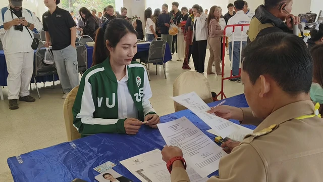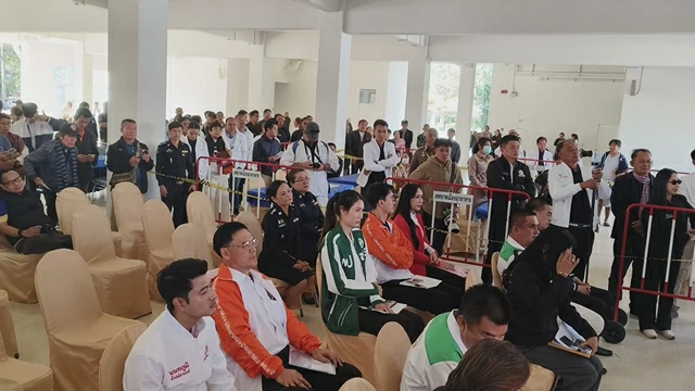 เมื่อวันที่ 27 ธันวาคม ที่หอประชุม 250 ปี อำเภอเมือง จังหวัดมุกดาหาร ซึ่งใช้เป็นสถานที่รับสมัครสมาชิกสภาผู้แทนราษฎรแบบแบ่งเขตเลือกตั้ง (ส.ส.) เขตเลือกตั้งที่ 1 และเขตเลือกตั้งที่ 2 ของจังหวัดมุกดาหาร บรรยากาศเป็นไปอย่างคึกคัก มีผู้สมัคร ส.ส. ทั้งสองเขต พร้อมด้วยผู้สนับสนุน เดินทางมายื่นใบสมัครต่อเจ้าหน้าที่ตั้งแต่เวลาประมาณ 07.40 น.