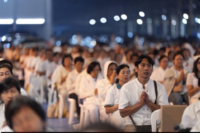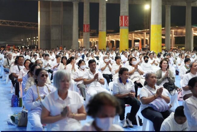 ด้านพระครูสมุห์สนิทวงศ์ วุฑฺฒิวํโส ผู้อำนวยการสำนักสื่อสารองค์กร วัดพระธรรมกาย กล่าวว่า เมื่อคืนที่ผ่านมา มีภาพบรรยากาศที่น่าประทับใจในกิจกรรมส่งท้ายปีเก่าต้อนรับปีใหม่ที่วัดพระธรรมกาย โดยมี พระภาวนาธรรมวิเทศ (ผู้ช่วยเจ้าอาวาส) เมตตามาเป็นประธานในพิธีฉลองชัย ซึ่งสร้างความปลื้มปีติแก่คณะสงฆ์และสาธุชนที่ได้ร่วมสวดธรรมจักรครบ 8,000 ล้านจบ หัวใจสำคัญคือหลัก “ละชั่ว ทำดี ทำใจให้ผ่องใส” ในขณะที่เราสวดมนต์ เราไม่ได้ไปเบียดเบียนใครเลย ทั้งกาย วาจา และใจ แถมยังเป็นช่วงเวลาที่เราได้ทบทวนคำสอนและสรรเสริญพระพุทธเจ้าไปพร้อมๆ กัน การที่ใจเราจดจ่ออยู่กับบทสวด ก็คือการฝึกสติและสมาธิ ช่วยให้กิเลสในใจลดลง ทำให้เรามีจิตใจที่สว่างผ่องใสรับปีใหม่นั่นเอง และ ขอเชิญชวนพุทธศาสนิกชนมาต้อนรับพระธรรมยาตราในโครงการกตัญญูบูชา มหาปูชนียาจารย์ พระมงคลเทพมุนี (สด จนฺทสโร) พระผู้ปราบมาร อนุสรณ์สถาน 7 แห่ง ปีที่ 14 ระหว่างวันที่ 2-31 มกราคมนี้ ส่วนใครที่ชอบถ่ายภาพหรืออยากไปพักผ่อนหย่อนใจ ตอนนี้ที่วัดพระธรรมกายเปิดสวนดอกไม้ “ทุ่งสวรรค์ ตะวันฉาย” ให้เข้าชมฟรี ถึงวันที่ 25 มกราคมนี้
