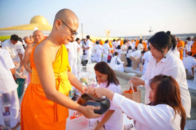 วันที่ 1 มกราคม 2569 ที่ลานธรรมพระมหาธรรมกายเจดีย์ วัดพระธรรมกาย ตำบลคลองสาม อำเภอคลองหลวง จังหวัดปทุมธานี พุทธศาสนิกชนกว่า 10,000 คน ร่วมทำบุญตักบาตรพระ 3,000 รูป ต้อนรับศักราชใหม่ 2569 อาหารแห้งที่ได้จากพิธีตักบาตรนำไปช่วยเหลือผู้ประสบภัยในภูมิภาคต่าง ๆ ทั่วประเทศ