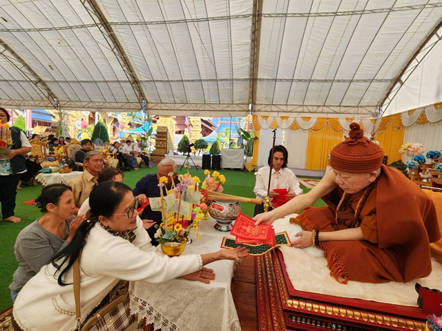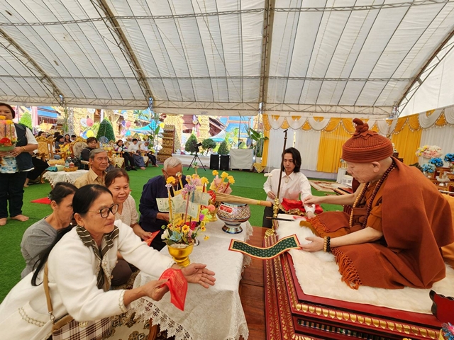 พิธีดังกล่าวจัดขึ้นเพื่อความเป็นสิริมงคลแก่ผู้เข้าร่วมพิธีโดยมีคณะสงฆ์ประกอบพิธีเจริญพระพุทธมนต์ท่ามกลางบรรยากาศแห่งศรัทธาและความสงบเรียบร้อย