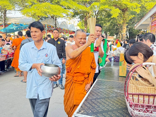 ต่อมาผู้สื่อข่าวได้สอบถามนายสวง สีเขียว ท่านได้กล่าวเพิ่มเติมกับผู้สื่อข่าวว่า วันนี้รับเกียรติให้เป็นมาประธานฝ่ายฆราวาส พิธีทำบุญตักบาตรข้าวสารอาหารแห้งต้อนรับปีใหม่ 2569 พร้อมด้วยพี่น้องประชาชน ผู้ใจบุญทุกท่าน ทำบุญตักบาตรข้าวสารอาหารแห้ง กันอย่างมากมาย กำหนดการ งานส่งท้ายปีเก่าต้อนรับปีใหม่ ในวันอังคารที่ 31 ธันวาคม 2568 เวลา 16.00 น.พระสงฆ์ 10 รูปเจริญพระพุทธมนต์ ธัมมจักกัปตันตสูตร และเวลา 23.00 น.เริ่มพิธีสวดมนต์ข้ามปี