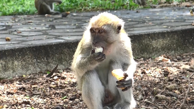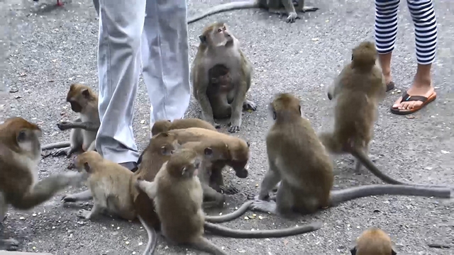 ในวันนี้มีนักท่องเที่ยวนำลองกอง 2 ถุงใหญ่ มาเดินแจกจ่ายให้กับฝูงลิงได้กินกันอย่างทั่วถึงซึ่งตามปรกติลิงที่นี่จะได้กินกล้วยและข้าวโพดที่มีขายอยู่ตามร้านค้าเท่านั้น สำหรับลองกองนักท่องเที่ยวนำใส่รถมาเอง ซึ่งเป็นที่ชื่นชอบของลิงเป็นอันมาก เดินแจกจ่ายให้ลิงแทบไม่ทันและหมดภายในเวลาอันรวดเร็ว ลิงจะแกะลองกองกันเหมือนคน แกะเปลือกกินเฉพาะเนื้อเม็ดคายทิ้ง ลิงแต่ละตัวกินลองกองอย่างตั้งใจ เนื่องจากเนื้อลองกองมีรสชาติอร่อย