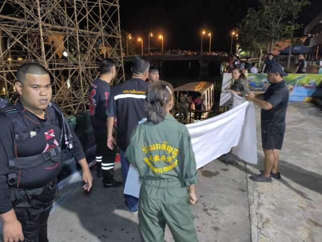 พบว่าประชาชนกำลังมุ่งดูเหตุการณ์อยู่บนสะพานแม่น้ำนครนายก และด้านข้างสนามวิ่งออกกำลังกายเทศบาลเมืองนครนายเป็นจำนวนมาก เจ้าหน้าที่กู้ภัยร่วมกตัญญูนครนายก กู้ภัยร่วมกตัญญูใช้เวลาในการค้นหาศพประมาณ 1 ชั่วโมงจึงพบศพสามารถนำศพขึ้นมาได้แล้วนำขึ้นเรือไปที่สะพานสวนหลวง ร.9 เทศบาลเมืองนครนายก เพื่อให้แพทย์และเจ้าหน้าที่ตำรวจชันสูตรศพ แล้วส่งศพผ่าพิสูตรที่โรงพยาบาล มศว. องครักษ์ เพื่อจะได้ประสานติดต่อญาติผู้เสียชีวิตมารับศพนำไปบำเพ็ญกุศลต่อไป