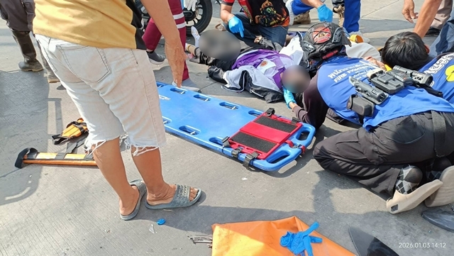 นครนายก คลิปเป็นข่าว เจ้าหน้าที่ตำรวจฝากเป็นอุทาหรณ์ จักรยานยนต์ซ้อน 3 ฝ่าไฟแดงชนปิกอัพบาดเจ็บ 3 ราย