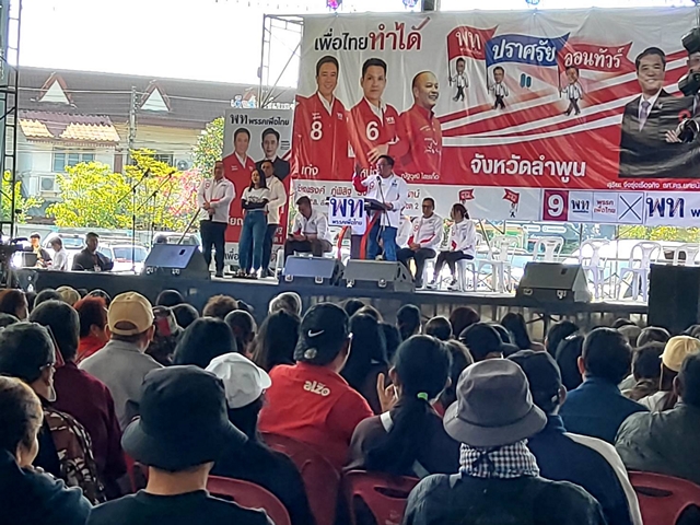 พรรคเพื่อไทย(พท.)จัดเวทีปราศรัยใหญ่ โดยมี นายยศชนัน วงศ์สวัสดิ์ แคนดิเดตนายกรัฐมนตรี พรรคเพื่อไทย, นายสุริยะ จึงรุ่งเรืองกิจ ผู้อำนวยการการเลือกตั้งพรรคเพื่อไทย และแคนดิเดตนายกรัฐมนตรี พรรคเพื่อไทย และ นายณัฐวุฒิ ใสยเกื้อ ผู้อำนวยการครอบครัวเพื่อไทย เดินทางมาปราศรัยช่วยหาเสียงให้กับ นายชัยณรงค์ ภู่พิสิฐ ผู้สมัครรับเลือกตั้งสมาชิกสภาผู้แทนราษฎร(สส.) จังหวัดลำพูน เขตเลือกตั้ง 1 พรรคเพื่อไทย และ นายรังสรรค์ มณีรัตน์ ผู้สมัครรับเลือกตั้งสมาชิกสภาผู้แทนราษฎร จังหวัดลำพูน เขตเลือกตั้งที่ 2 พรรคเพื่อไทย ในวันนี้( 9 ม.ค. 69 ) เวลา 10 นาฬิกา ณ ตลาดลำพูนจตุจักร ตำบลป่าสัก อำเภอเมืองลำพูน จังหวัดลำพูน