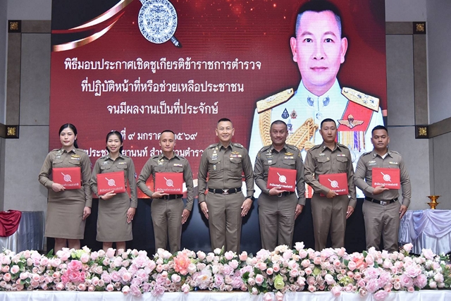 จากนั้น ผบ.ตร.ได้เป็นประธานมอบประกาศเกียรติคุณเชิดชูเกียรติข้าราชการตำรวจที่มีจิตวิญญาณของผู้พิทักษ์สันติราษฎร์ มีความกล้าหาญ และเสียสละ จนเป็นที่ประจักษ์ต่อสังคม ในห้วงเดือนพฤศจิกายน 2568 ถึงเดือนมกราคม 2569 อันเป็นการสร้างขวัญกำลังใจและเป็นแบบอย่างที่ดีแก่ข้าราชการตำรวจ ตามนโยบายการบริหารราชการของสำนักงานตำรวจแห่งชาติ โครงการ “ทำดีมีรางวัล ทำไม่ดีมีโทษ” โดยมีข้าราชการตำรวจผู้สมควรได้รับประกาศนียบัตรเชิดชูเกียรติ “ทำดีมีรางวัล” ณ ห้องศรียานนท์ อาคาร 1 สำนักงานตำรวจแห่งชาติ จำนวน 6 ราย ได้แก่