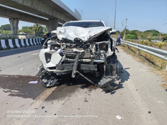 ปทุมธานี-สลดจักรยานยนต์ถูกรถฟอร์จูนเนอร์ชนตาย 3 ศพพร้อมเด็ก7ขวบ