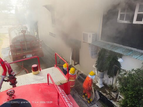 มุกดาหาร -ระทึก! ไฟไหม้ร้านดอกไม้กลางเมืองมุกดาหาร วอด 2 คูหา คาดไฟฟ้าลัดวงจรสะเก็ดไฟตกใส่กองผ้า