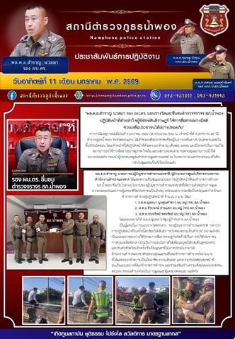 จากกรณีเหตุการณ์เมื่อวันที่ 5 มกราคม 2569 เวลาประมาณ 15.50 น. เจ้าหน้าที่ตำรวจจราจร สถานีตำรวจภูธรน้ำพอง จังหวัดขอนแก่น ได้เข้าช่วยเหลือประชาชนซึ่งอยู่ในภาวะเครียด บริเวณสะพานลอยในพื้นที่รับผิดชอบ โดยเจ้าหน้าที่ได้ปฏิบัติหน้าที่ด้วยความกล้าหาญ เสียสละ อดทน และมีไหวพริบในการแก้ไขสถานการณ์ ใช้การสื่อสารอย่างสุภาพ ใจเย็น และเหมาะสม จนสามารถควบคุมสถานการณ์ไว้ได้อย่างปลอดภัย ก่อนนำผู้ประสบเหตุส่งเข้ารับการดูแลจากแพทย์ ณ โรงพยาบาล และประสานญาติให้รับกลับไปดูแลต่อเป็นที่เรียบร้อยแล้ว