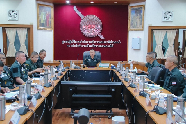 วันนี้ (12 มกราคม 2569) เวลา 14.30 น. พล.ต.อ.กิตติ์รัฐ พันธุ์เพ็ชร์ ผู้บัญชาการตำรวจแห่งชาติ (ผบ.ตร.) มอบหมายให้ พล.ต.อ.สำราญ นวลมา รองผู้บัญชาการตำรวจแห่งชาติ (ด้านความมั่นคง) ในฐานะผู้บัญชาการศูนย์ปฏิบัติการสำนักงานตำรวจแห่งชาติ ส่วนหน้า และผู้อำนวยการศูนย์รักษาความปลอดภัยและความสงบเรียบร้อยการเลือกตั้ง สำนักงานตำรวจแห่งชาติ (รอง ผบ.ตร.(มค)/ผบ.ศปก.ตร.สน./ผอ.ศลต.ตร.) พร้อมด้วย พล.ต.ท.นพศิลป์ พูลสวัสดิ์ ผู้บัญชาการตำรวจประจำสำนักงานผู้บัญชาการตำรวจแห่งชาติ (ผบช.ประจำ สง.ผบ.ตร.) และ พล.ต.ต.พิทักษ์ อุทัยธรรม รอง ผบช.ประจำ สง.ผบ.ตร. ลงพื้นที่ติดตามสถานการณ์ในพื้นที่จังหวัดชายแดนภาคใต้ โดยมี พล.ต.ท.ปิยะวัฒน์ เฉลิมศรี ผู้บัญชาการตำรวจภูธรภาค 9 (ผบช.ภ.9), พล.ต.ต.ธเรศ แก้วละเอียด รอง ผบช.ภ.9, พล.ต.ต.ณฐกรญ์ กาญจนาภรณ์ รอง ผบช.ภ.9, พล.ต.ต.สันทัศน์ เชื้อพุฒตาล ผบก.ภ.จว.ปัตตานี, พล.ต.ต.กองอรรถ สุวรรณขำ ผบก.ภ.จว.ยะลา, พล.ต.ต.ประยงค์ โคตรสาขา ผบก.ภ.จว.นราธิวาส, พล.ต.ต.พหล เกตุแก้ว ผบก.ตชด.ภาค 4 และผู้เกี่ยวข้อง ร่วมประชุม ณ ห้องประชุม War Room ศปก.ตร.สน. อ.เมือง จ.ยะลา