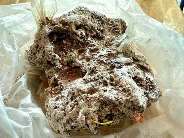เจ้าหน้าที่ยังสันนิษฐานว่า ก้อนดังกล่าว มีโอกาสเป็น “อ๊วกปลา/อำพันทะเล” สูง อย่างไรก็ตามยังไม่สามารถยืนยันชนิดของสัตว์ทะเลได้ ต้องส่งตัวอย่างให้หน่วยงานด้านทะเล เช่น ศูนย์วิจัยทรัพยากรทางทะเลและชายฝั่ง ตรวจสอบอีกครั้งเพื่อความถูกต้อง ส่วนเศษถุงหรือพลาสติกขนาดเล็กที่พบฝังอยู่ภายใน คาดว่าเป็นเศษขยะที่ลอยอยู่ในทะเล ซึ่งอาจถูกสัตว์ทะเลขนาดใหญ่กลืนเข้าไปสะสม ก่อนขับออกมาเป็นก้อนดังกล่าว
