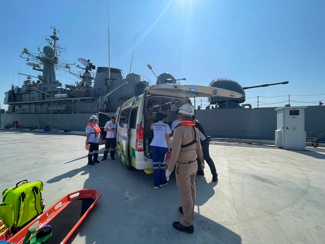 ทัพเรือภาคที่ 1 บูรณาการร่วม ศรชล.ภาค 1 ส่งเรือ ต.264 พร้อมชุดแพทย์ฉุกเฉิน ช่วยเหลือลูกเรือประมงต่างสัญชาติบาดเจ็บสาหัสกลางทะเลสัตหีบ