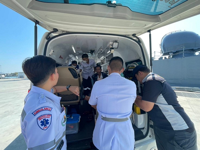 • จากนั้น ชุดปฏิบัติการฯ ได้ลำเลียงผู้บาดเจ็บส่งต่อเข้ารับการรักษาที่โรงพยาบาลสัตหีบ (กม.10) เพื่อรับการรักษาทางศัลยกรรมและเฝ้าติดตามอาการต่อไป