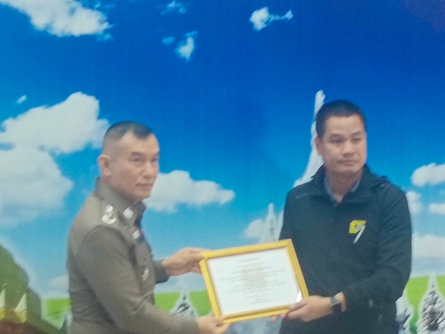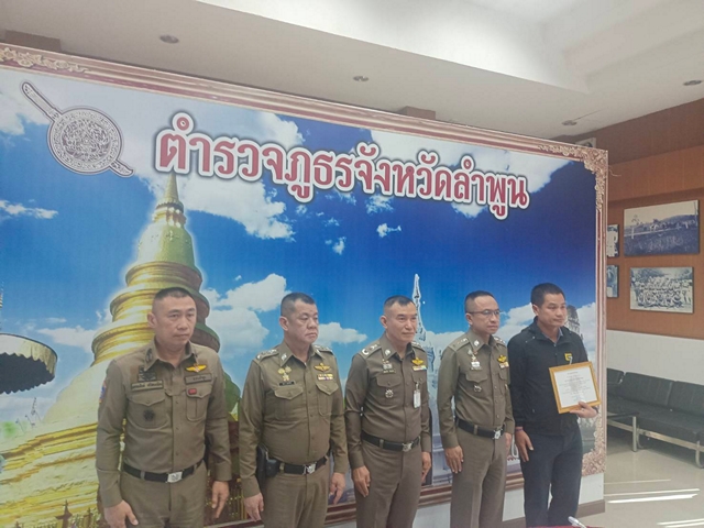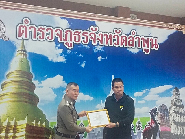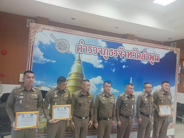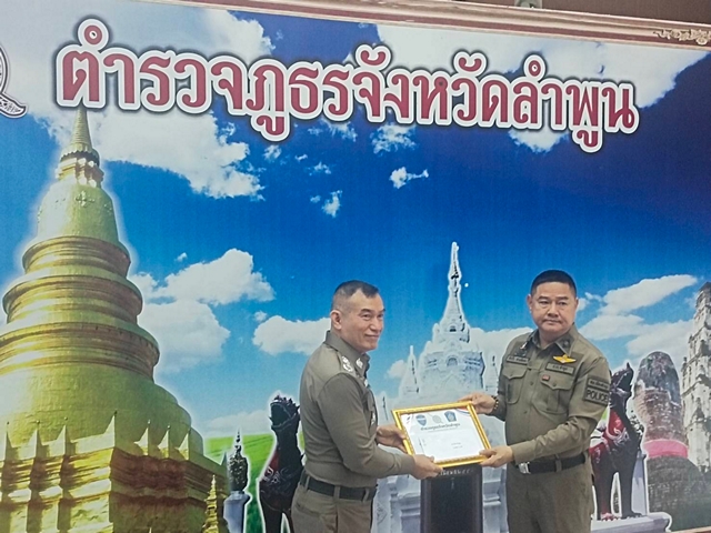 พลตำรวจตรี บุณยวัตฯ มอบใบประกาศเกียรติบัตร แด่ พันตำรวจเอก สำเร็จ สามสีทอง ผู้กำกับการสถานีตำรวจภูธรเมืองเมืองลำพูน มีผลงานการบังคับกฎหมาย ข้อหาเมาขณะขับรถดีเยี่ยมเป็นอันดับหนึ่งของตำรวจภูธรจังหวัดลำพูน พร้อมมอบใบประกาศเกียรติบัตรอีกหลายสถานีตำรวจ ในช่วงเทศกาลปีใหม่ พุทธศักราช 2569