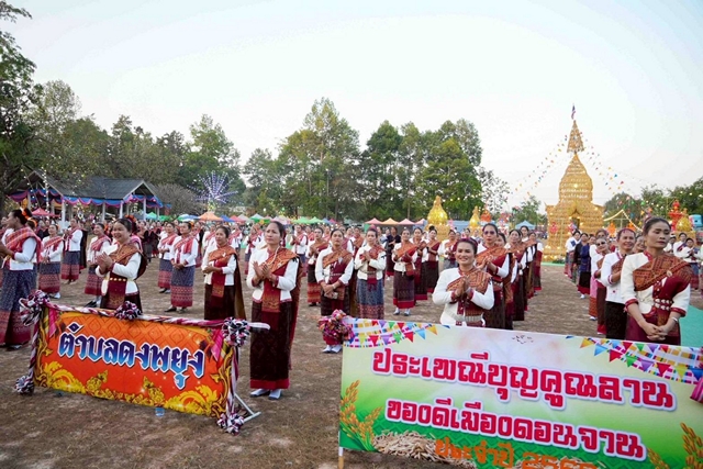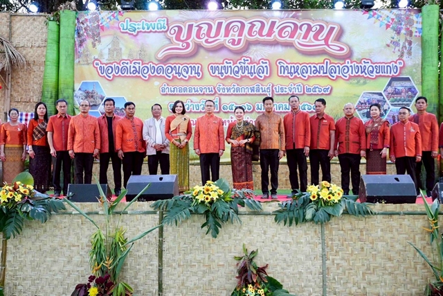 สำหรับงานประเพณีบุญคูณลาน ของดีเมืองดอนจาน ขนข้าวขึ้นเล้า กินหลามปลาอ่างห้วยแกง อำเภอดอนจาน