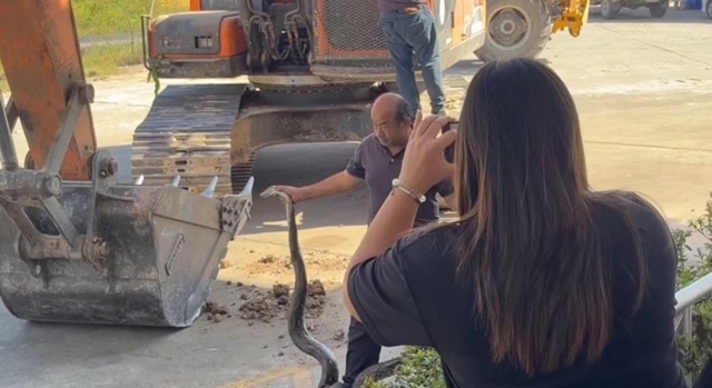 ที่องค์การบริหารส่วนตำบลเขาพระ ตำบลเขาพระ อำเภอเมือง จังหวัดนครนายก พนักงาน อบต.เขาพระได้รับมอบหมายให้ไปปรับภูมิทัศน์เตรียมสถานที่จัดงานด้านหลังอบต.เขาพระ ได้พบงูหลามตัวใหญ่กำลังนอนขดตัวอยู่ จึงได้ใช้รถเครื่องยนต์หนักตักงูหลามตัวใหญ่ตักออกมาแล้วให้เจ้าหน้าที่กู้ภัยสว่างอริยะนครนายก ใช้มือเปล่าเข้าไปจับที่หัวงูหลามในเครื่องตักเครื่องยนต์ใหญ่