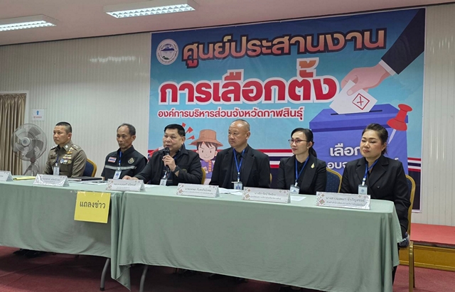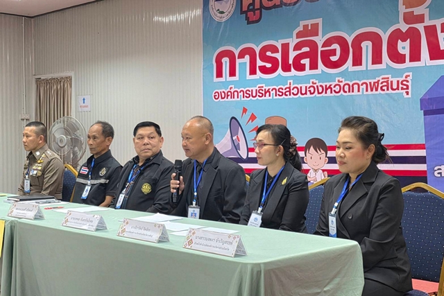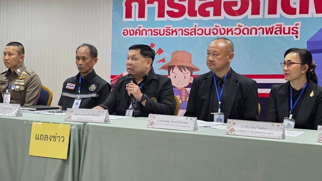 ที่ศูนย์ประสานงานการเลือกตั้งประจำ อบจ.กาฬสินธุ์ กกต.ประจำ อบจ.กาฬสินธุ์ ประกอบด้วย พล.ต.ต.มนตรี จรัลพงศ์ นายเสกสรรค์ ทรัพย์นิเวศน์ พันตำรวจเอก ปวิช แสงอรุณ พร้อมด้วยปลัด อบจ.กาฬสินธุ์ เจ้าหน้าที่ศูนย์ประสานงานการเลือกตั้งประจำ อบจ.กาฬสินธุ์ ร่วมกันแถลงผลการรับสมัครเลือกตั้งสมาชิกสภาองค์การบริหารส่วนจ.กาฬสินธุ์ (ส.อบจ.) แทนตำแหน่งที่ว่าง