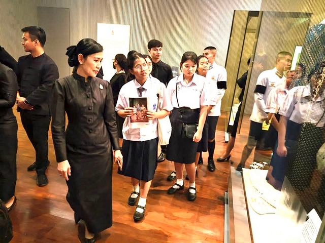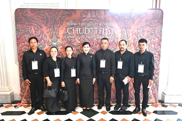 วันที่ 17 มกราคม 2569 นางสาวอโรชา นันทมนตรี ผู้ว่าราชการจังหวัดนครปฐม พร้อมด้วย รองนายกและสมาชิกเหล่ากาชาดจังหวัด หัวหน้าส่วนราชการ นำนักเรียนทุนมูลนิธิทุนการศึกษาพระราชทานสมเด็จพระบรมโอรสาธิราชฯ สยามมกุฎราชกุมาร (ม.ท.ศ.), ทุนมูลนิธิร่วมจิตต์น้อมเกล้าฯ เพื่อเยาวชน ในพระบรมราชินูปถัมภ์ และโครงการทุนการศึกษาเฉลิมราชกุมารี ตลอดจนนักศึกษาจากวิทยาลัยสารพัดช่าง วิทยาลัยเทคโนโลยีพัฒนาบริหารธุรกิจ วิทยาลัยอาชีวศึกษา วิทยาลัยเทคนิค ข้าราชการและเจ้าหน้าที่จากหน่วยงานต่างๆ ประชาชนจากทั้ง 7 อำเภอ กว่า 750 คน ร่วมชมพิพิธภัณฑ์ผ้าในสมเด็จพระนางเจ้าสิริกิติ์ พระบรมราชินีนาถ ณ หอรัษฎากรพิพัฒน์ ภายในบริเวณพระบรมมหาราชวัง กรุงเทพมหานคร ภายหลังจากการเข้าเฝ้าฯ กราบถวายบังคมพระบรมศพ สมเด็จพระนางเจ้าสิริกิติ์ พระบรมราชินีนาถ พระบรมราชชนนีพันปีหลวง