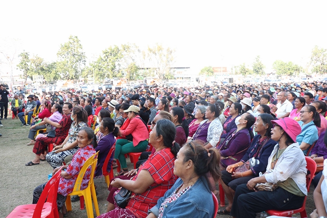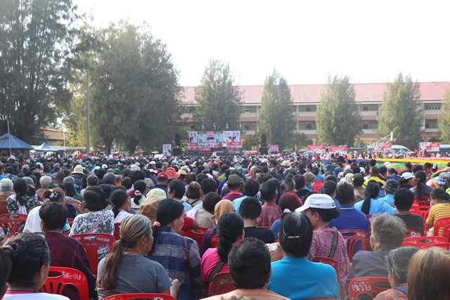 ขณะที่ นายสุทิน คลังแสง กล่าวปราศรัยตอนหนึ่ง เกี่ยวกับปัญหาหนี้กองทุนเงินล้าน ที่ประชาชนเป็นหนี้จำนวนมาก ประกาศที่จะแก้ปัญหาด้วยการปลดหนี้กองทุน และการเพิ่มเบี้ยยังชีพ เป็นเงินประกันรายได้คนไทย จากเบี้ยยังชีพสูงอายุ 600-800 บาทให้เต็มจำนวน 3,000 บาท ให้ประชาชนกินอิ่มนอนอุ่นทุกครอบครัวทั่วไทย ส่วนด้านการป้องกันยาเสพติด จะผลักดันให้จัดตั้งศูนย์บำบัดยาเสพติดในทุกจังหวัด ในกลุ่มผู้ค้าให้โอกาสกลับตัวกลับใจ ให้ชุมชนช่วยเหลือกัน โดยขอให้ทหารเข้ามาร่วมสแกนพื้นที่ร่วมกับชาวบ้าน นอกจากนี้นโยบายการออมเงิน จะนำหวยเกษียณที่จะเป็นการออมเงิน นอกจากนี้ยังกล่าวรณรงค์ท่ามกลางสถานการณ์การเลือกตั้งโค้งสุดท้ายที่คาดว่าอาจจะมีการใช้เงินในการเลือกตั้งถึงหัวละ 2,000 บาท ที่หากเป็นความจริงก็ขอให้ประชาชนมาเลือกพรรคเพื่อไทยเช่นเดิม เพื่อจะได้สัมผัสนโยบายของพรรคเพื่อไทยที่ทำได้จริง