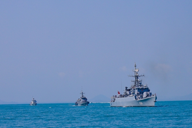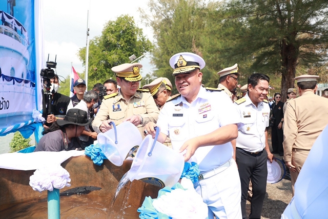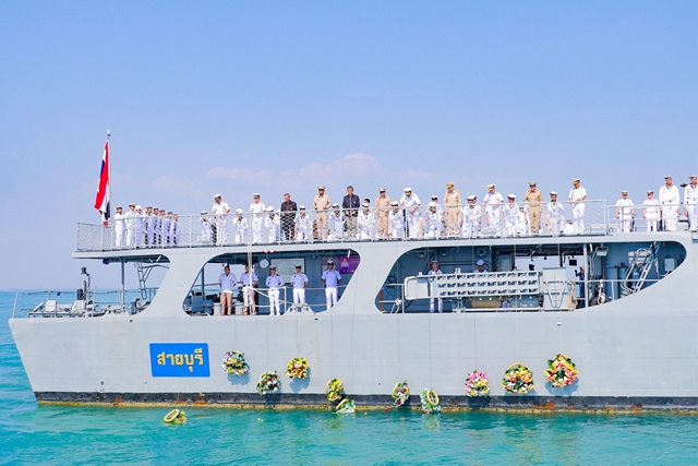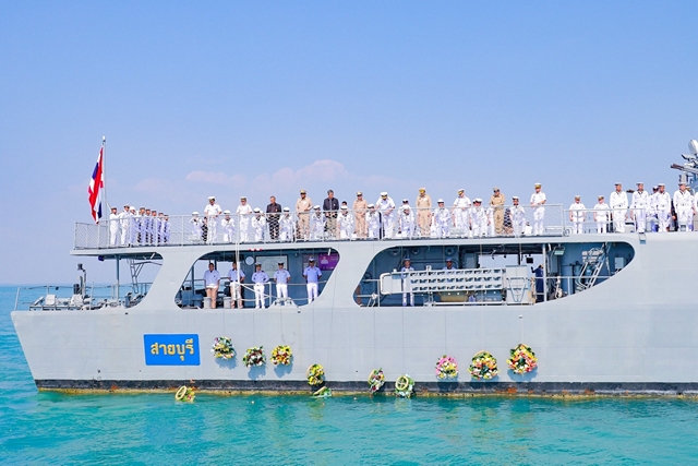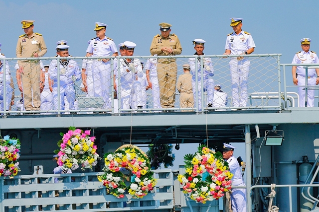 ภายหลังพิธีเปิดงานฯ กองทัพเรือ โดยทัพเรือภาคที่ 1 ได้จัดพิธีวางพวงมาลาในทะเล บริเวณเกาะลิ่ม จังหวัดตราด โดยจัดตั้งหมู่เรือเฉพาะกิจ จำนวน 6 ลำ ประกอบด้วย เรือหลวงสายบุรี เรือหลวงเทพา เรือ ต.996 เรือ ต.265 เรือ ต.228 และเรือของ ศูนย์อำนวยการรักษาผลประโยชน์ของชาติทางทะเล หมายเลข 7401 เดินทางออกประกอบพิธีลอยพวงมาลา โดยมีผู้บัญชาการทัพเรือภาคที่ 1 ผู้แทนผู้บัญชาการทหารเรือ เป็นประธานในพิธี พร้อมเรียนเชิญผู้ว่าราชการจังหวัดตราด หัวหน้าส่วนราชการ และนายทหารชั้นผู้ใหญ่ของกองทัพเรือ เข้าร่วมในพิธีฯ อย่างสมเกียรติ