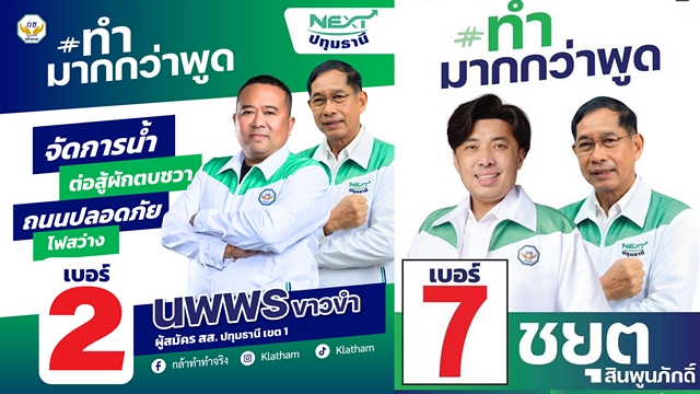 1 นาย นพพร ขาวขำ อดีตรองนายกฯองค์การบริหารส่วนจังหวัดปทุมธานีลงเขต1 เบอร์2