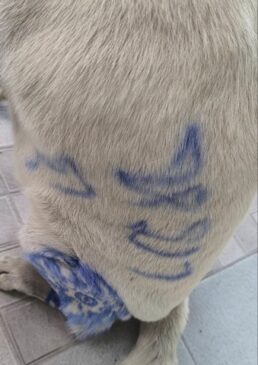 นครนายก – เจ้าขาวหมาจรแสนรู้ เคยออกข่าวทีวี มีจิตกรนิรนามเขียนแวนตา เขียนลำตัวขาหน้าขาหลังตัวลายพ้อยท์