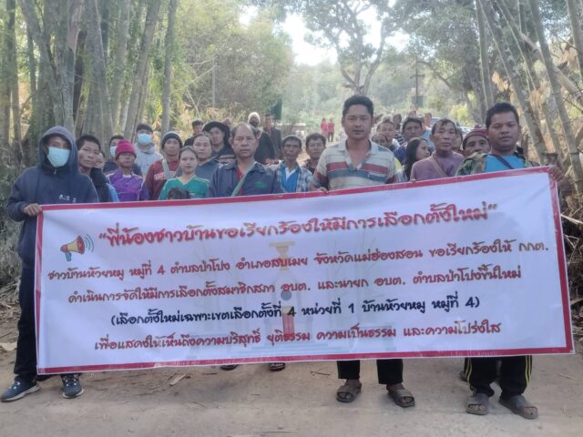 ชาวบ้านห้วยหมู หมู่ 4 ตำบลป่าโปง อำเภอสบเมย จังหวัดแม่ฮ่องสอน รวมตัวกันเรียกร้องให้ทาง กกต.แม่ฮ่องสอน จัดให้มีการเลือกตั้งใหม่ใน เขตเลือกตั้งที่ 4 หน่วยที่ 1 บ้านห้วยหมู ทั้ง การเลือกตั้ง นายก.อบต. และ สมาชิกฯ อบต. หลังพบความไม่โปร่งใสในการบิดเบือนข้อมูลสลับสีบัตรในการเลือกตั้ง อบต.ป่าโปง ที่ผ่านมา