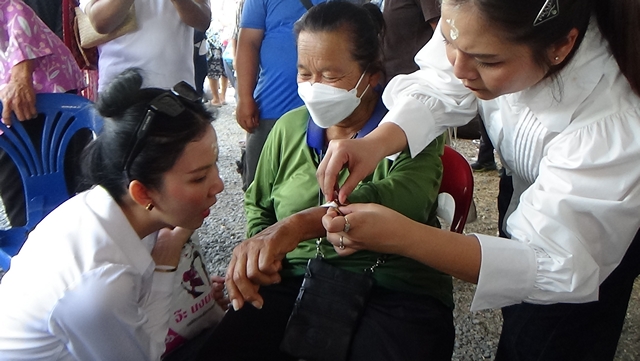 โดยในงานคุณแสงดาว คำเงินพร้อมครอบครัว ร้านสตาร์ซิลเวอร์ ส่งออก เขตสาธรและนาง สุภาพ กุดเพ็ชร เเม่ค้าข้าวเเกง จังหวัดสมุทรปราการ ร่วมทำโรงทาน กระเพาะปลา จำนวน 2,000 ชามและน้ำดื่ม แจกประชาชนที่เดินทางมารับข้าวสาร ได้กล่าวว่าปีนี้เรามาเป็นปีที่ 4 แล้วโดยปีมีเราตั้งเป้าแจกแค่ 1.200 ถ้วยแต่ไม่พอต้องทำถึง 1,800 ถ้วย ปีหน้ามาอีกตั้งเรทไว้ 3,000 ถ้วย