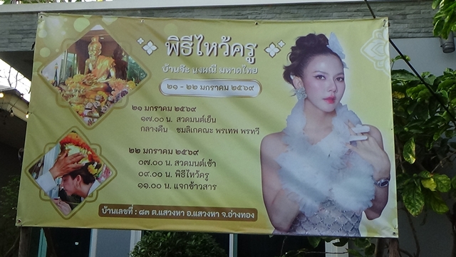 เมื่อเวลา 09.00 น.ของวันนี้(22มค.69)ที่บ้านเลขที่ 83 หมู่ 12 ตำบลแสวงหา อำเภอแสวงหา จังหวัดอ่างทอง จ๊ะ นงผณี มหาดไทย ควงแฟนหนุ่ม”บิ๊ก อชิรพล”และครอบครัว ได้มีการทำบุญเลี้ยงพระและการไหว้ครู โดยมีพระสงฆ์มาสวดมนต์เช้า จากนั้นพราหมณ์ได้มีอัญเชิญครูบาอาจารย์ ตลอดจนพิธีครอบครู และมีเพื่อนศิลปินเดินทางมาร่วมงานมากมาย อาทิ เอม วิทวัส รัตนบุญบารมี ,ลู่ลู่ ดวงฤดี บุญบำรุง , “เอแคลร์ จือปาก”เจ้าของบทเพลง เมล่อน จากนั้นคณะได้แจกข้าวสารหอมมะลิจำนวน 4,000 ถุง ท่ามกลางประชาชนที่หลั่งไหลกันมาตั้งแต่เช้า ซึ่งมีชาวบ้านมารับแจกข้าวสารอย่างมากมาย ซึ่งมากันตั้งแต่เช้า มีทั้งประชาชนจังหวัดอ่างทองและจังหวัดใกล้เคียง